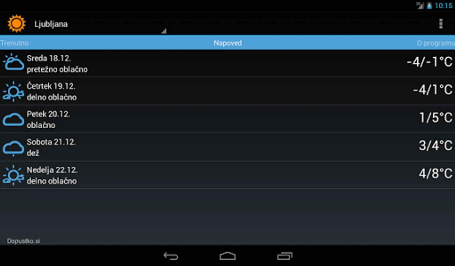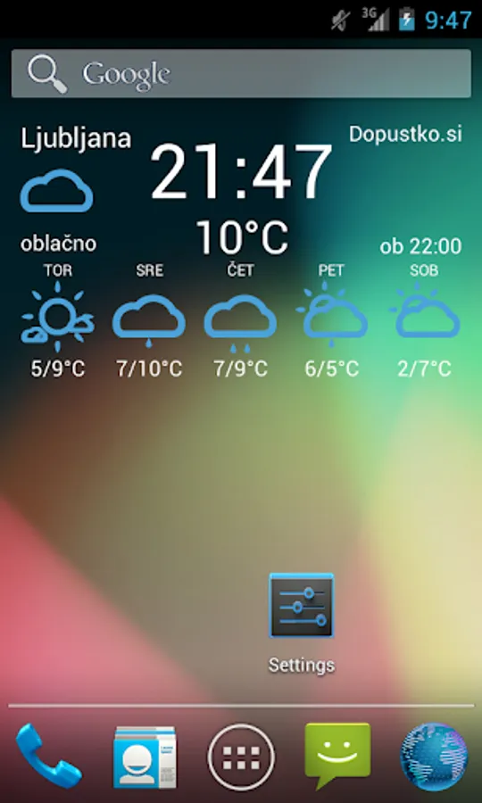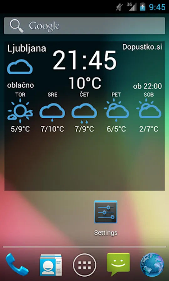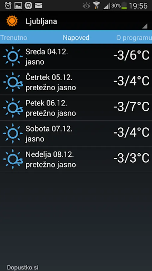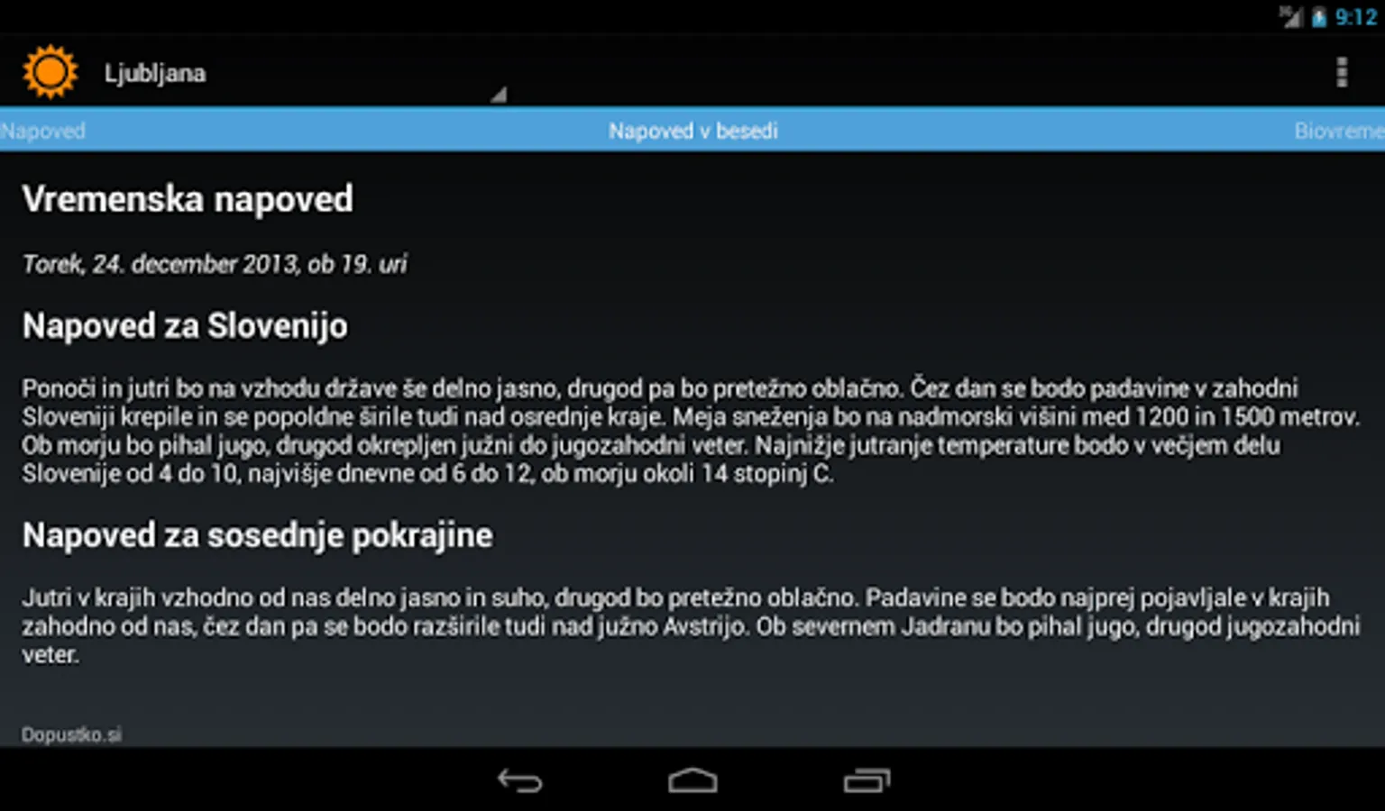 5-day weather forecast, weather conditions, current time, 4x2 widget, weather forecast in a word, biovreme, warning, rain and snow (not on the ski slopes).