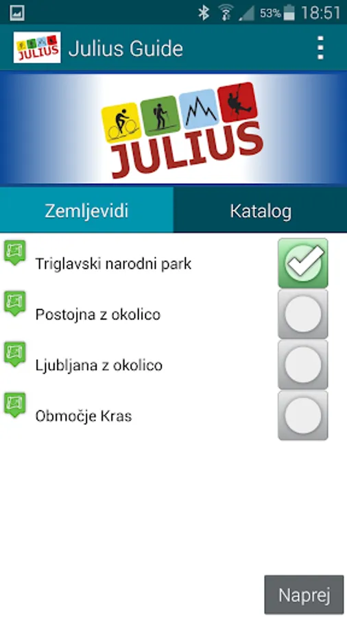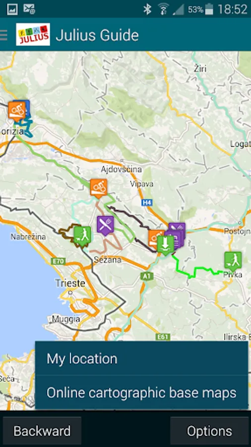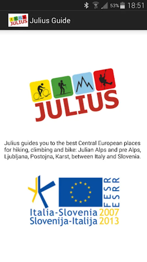 Julius Mobile guide welcomes you in the fantastic trip from Julian Alps and pre Alps, through warming scenes of Municipality of Monfalcone, Ljubljana, Postojna and Gorizia, mysterious Karst to the Adriatic coast. Your Mobile guide will navigate you to the Charming and warming points of interests, with extraordinary offer of cultural and natural heritage, gastronomy, events, sports and recreation, which will fulfil your expectations. The Mobile guide navigation through thematic routes dedicated to cyclers, trekkers riders and tour skiers, with its beauty and interesting points will give you an extra energy and power. With its use there will be no bad filing, missing routes and losing time but only true and real enjoyment.