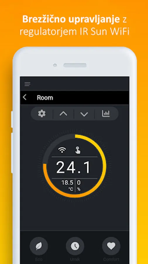 Management of the heating is enabled by the rights granted by admin to several users at the same time. You must register and connect to WiFi IR Sun regulators before using the application.
