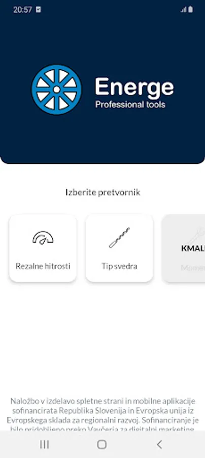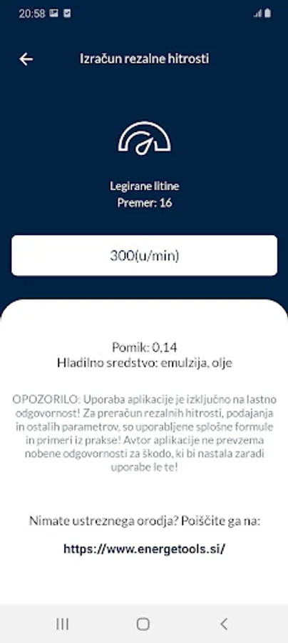 Assistant in selecting the appropriate drill bit according to the material, hole depth, drilling type and coating, and in calculating the cutting speed when drilling according to the material, type of cooling and drill diameter.