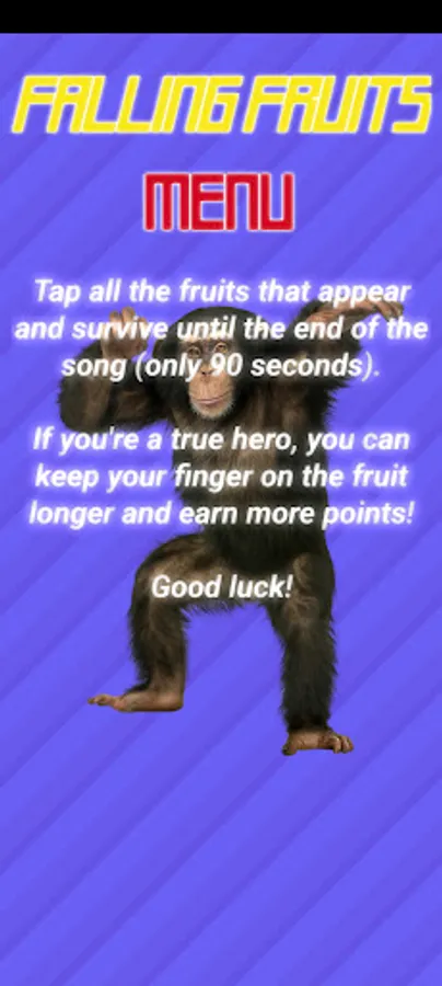 Tap all the falling fruits that appear and survive until the end of the song (only 90 seconds). If you're a true hero, you can keep your finger on the fruit longer and earn more points!