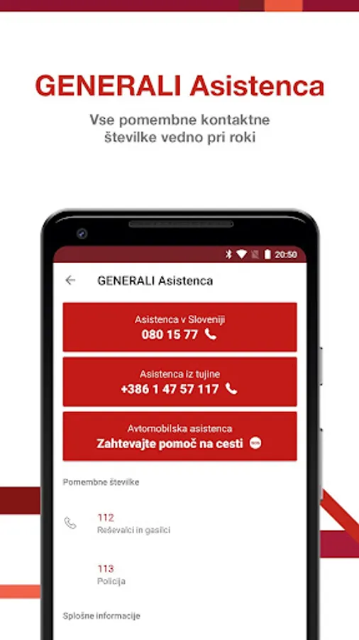 Mobile application "My GENERALI" represents a simple step to the modern insurance industry. In the current version of the mobile app are available Quick contact the insurance company Generali, assistance center, locations and business units working times and loss centers with a link to the navigation. There is also the "My Documents", where you easily scan and save a copy of your documents such as insurance policies, driver assistance card, green card and driving license.