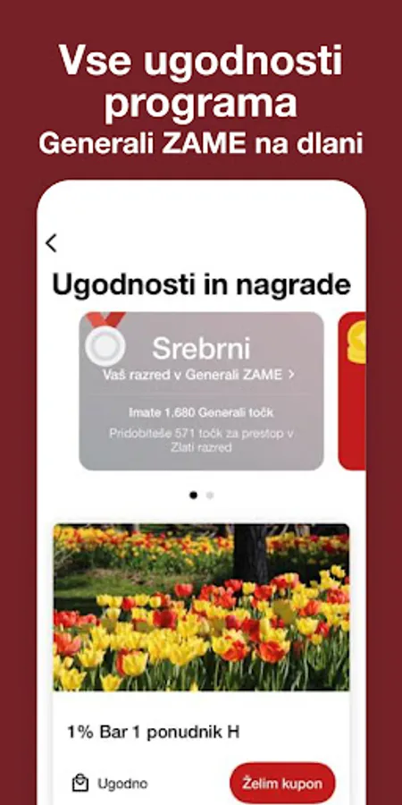 Registration in the mobile application brings you an additional 70 points in the Generali Zame Benefits Program.