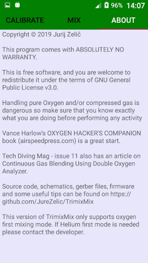 Application uses USB HW interface to connect to two oxygen sensors. Everything about HW (schematics, PCB, firmware for arduino nano) can be downloaded from https://github.com/JureZelic/TrimixMix.