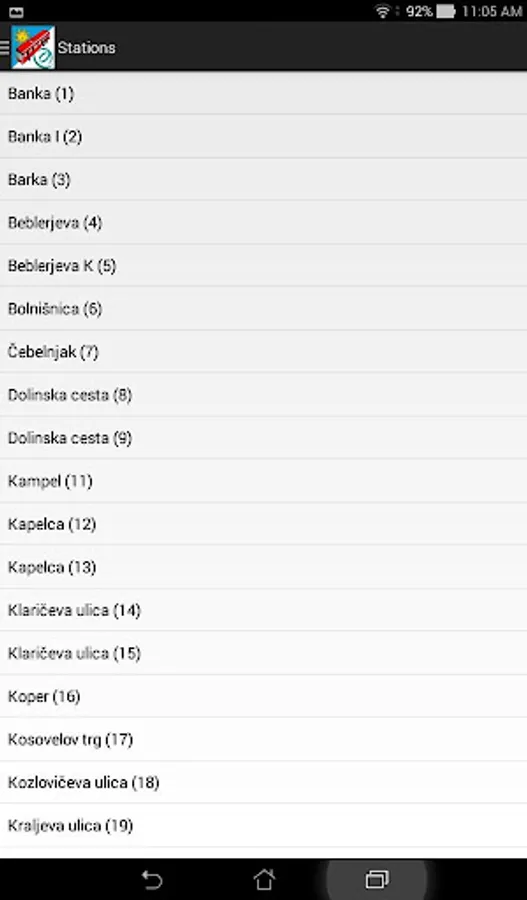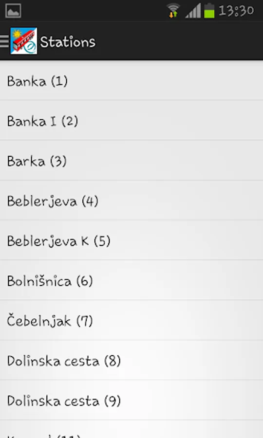- Stations: An alphabetical list of all bus stops available and its arrivals information. On station selection closest departures with marked bus route directions describing route finish station are available. Next departures in blue color are based on real-time tracking system.