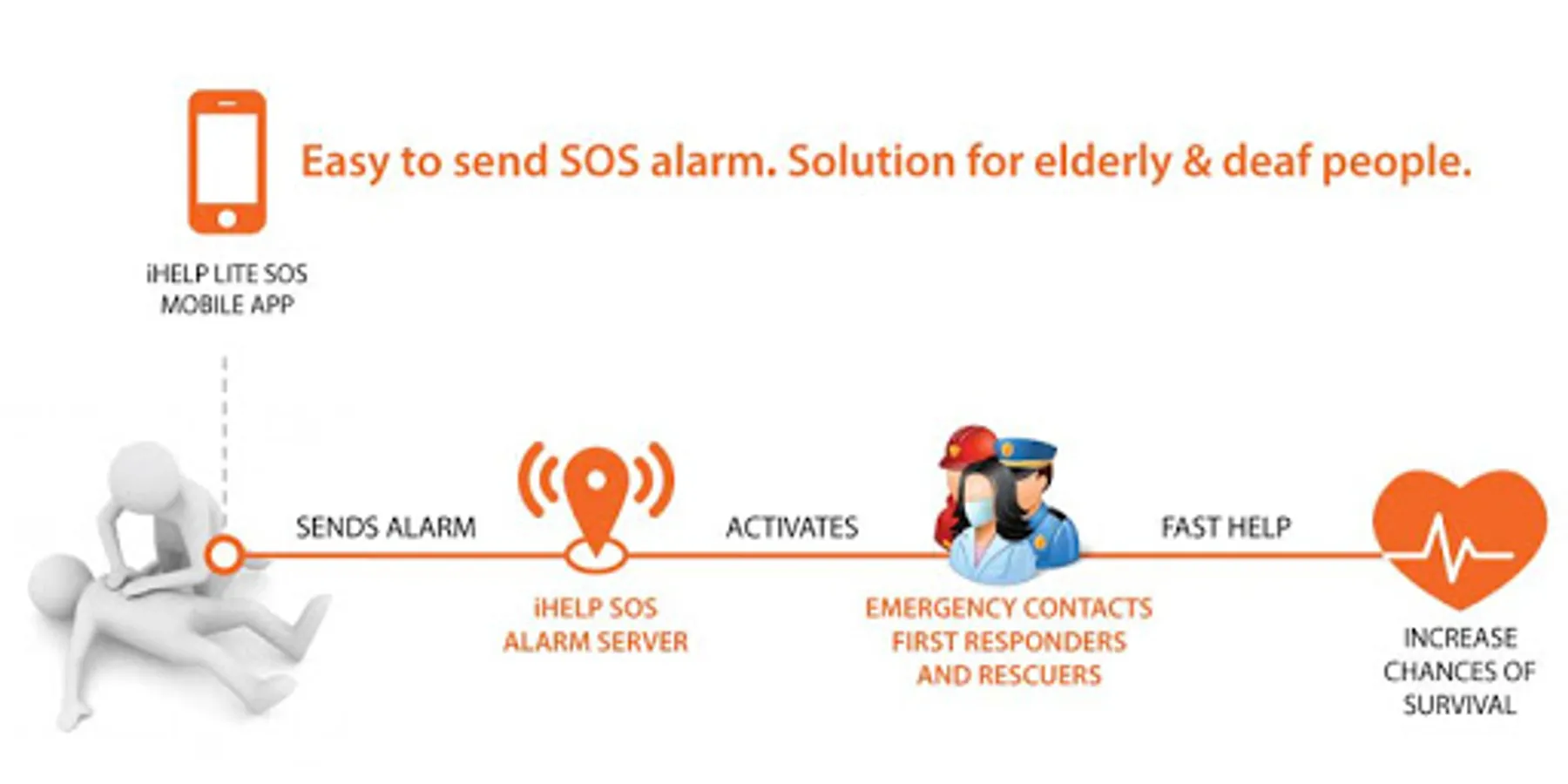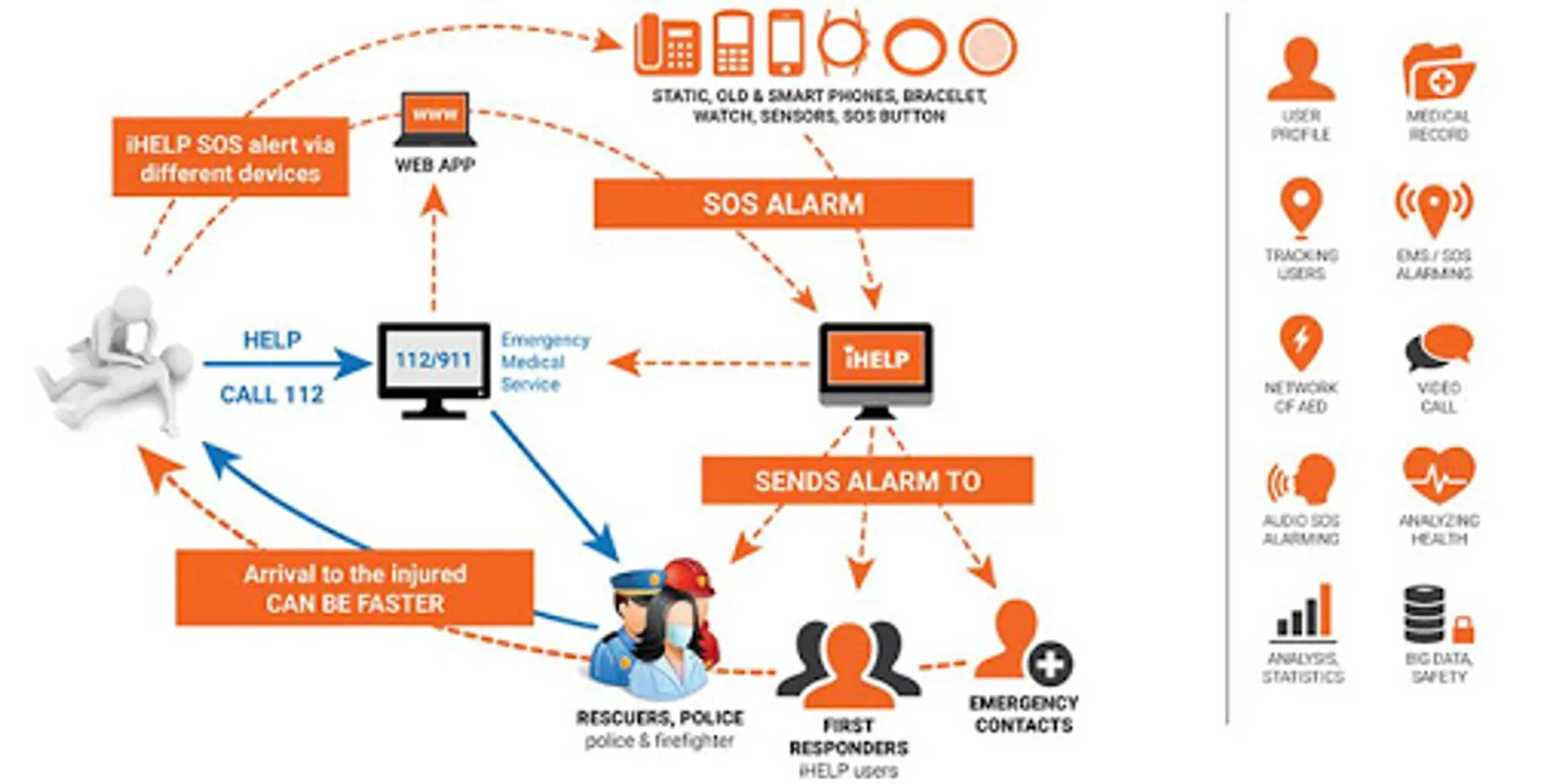 iHELP SOS mobile application creates a care network bringing family, friends, first responders and professional rescuers closer together in cases of emergency and in case of emergency sends an SOS alarm your ICE contacts, iHELP users in radius 500 meters and professional rescuers.