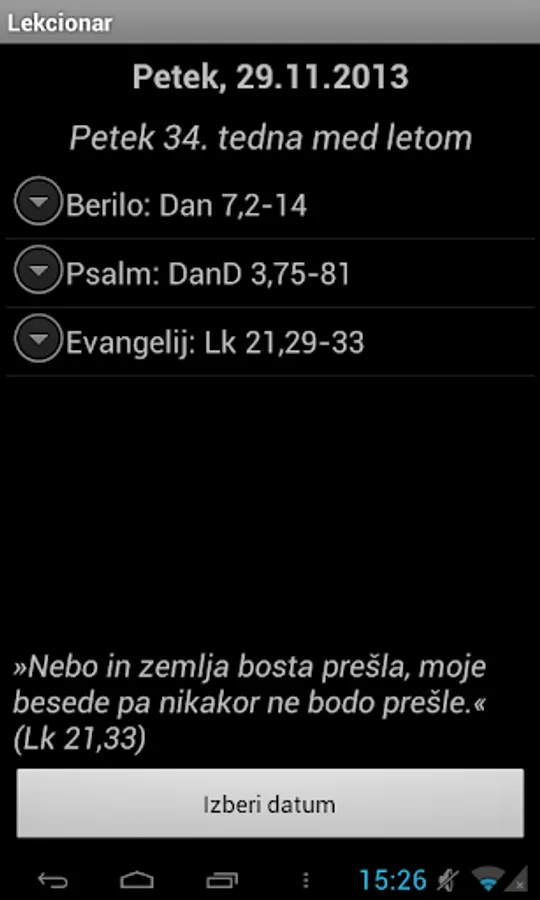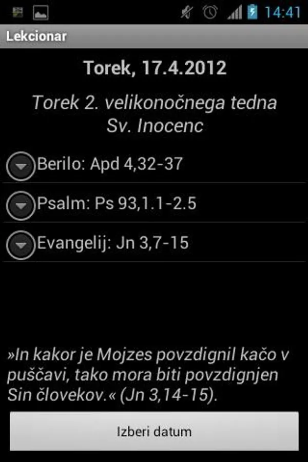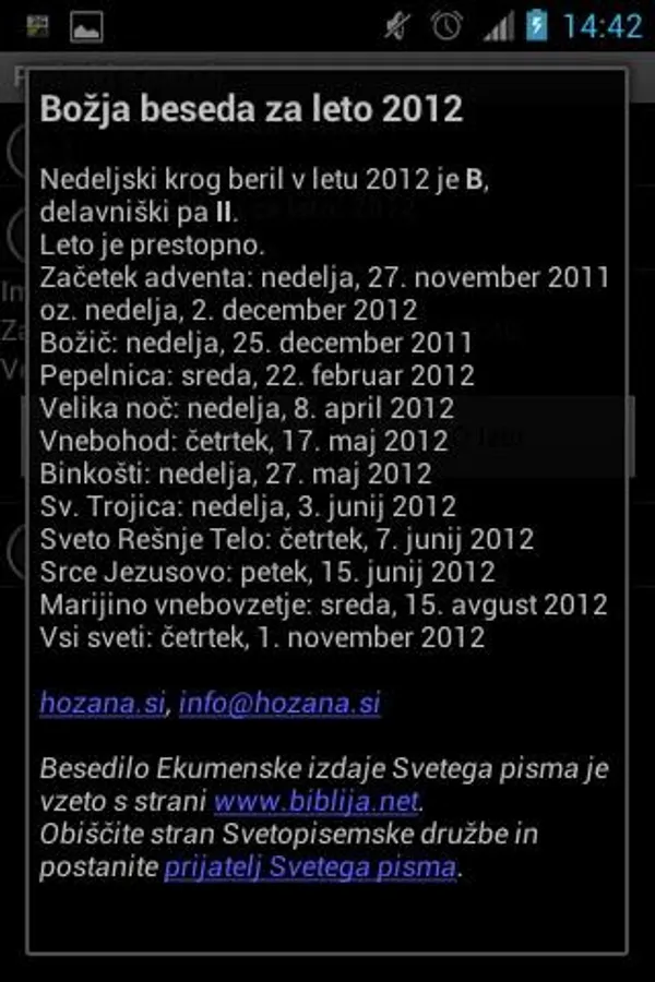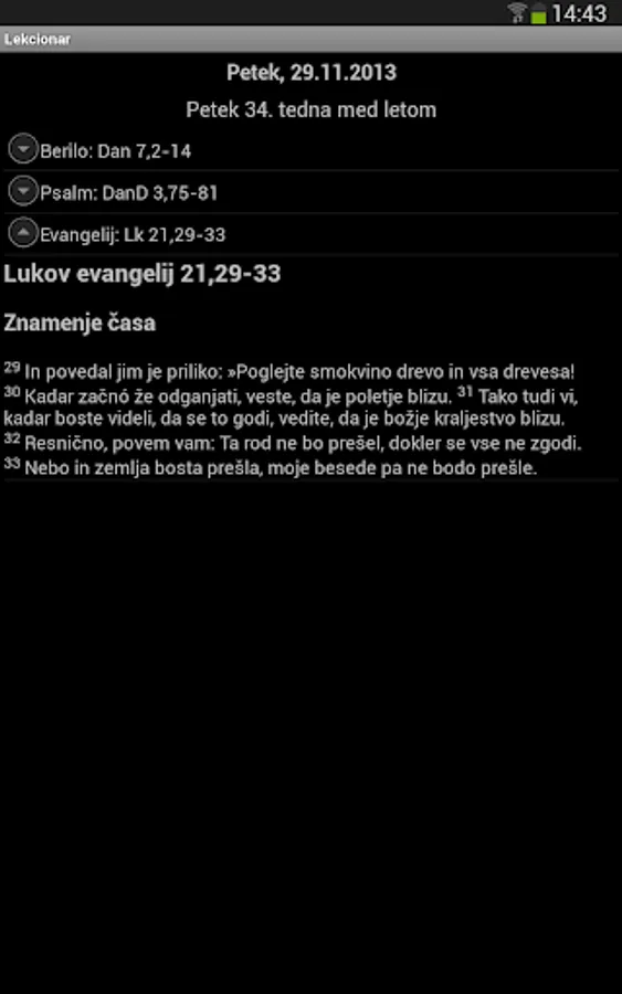 Aplikacija nudi berila in evangelije za vsak dan v letu, prav tako ponuja tudi widget, ki si ga lahko namestite na svoje namizje.