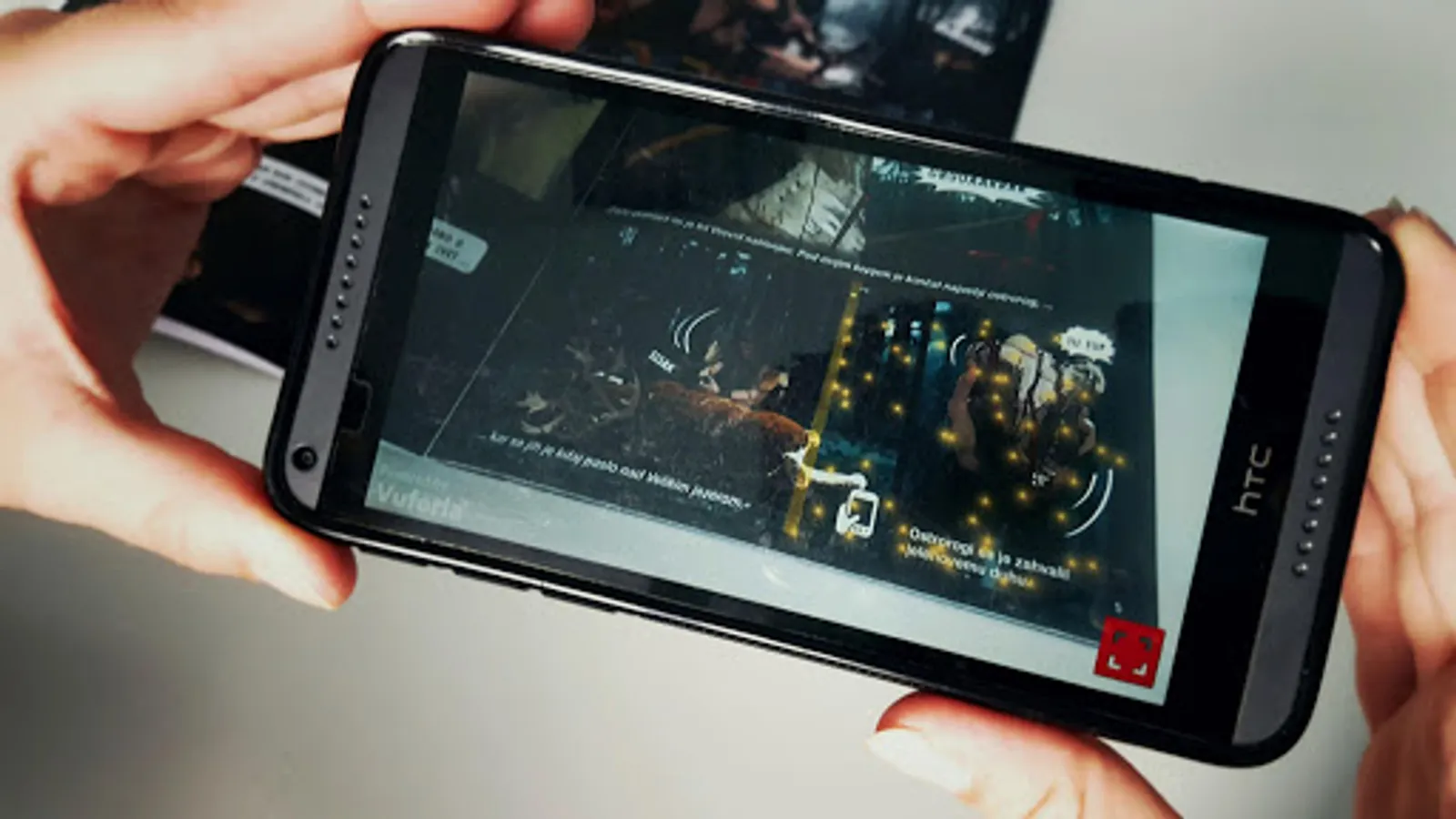 V stripu poišči sliko, ki je označena z ikono - preslikaj, zaženi aplikacijo, preveri internetno povezavo in s telefonom preslikaj označeno sliko. Počakaj nekaj sekund, da se na zaslonu pojavi prizor iz animiranega filma.