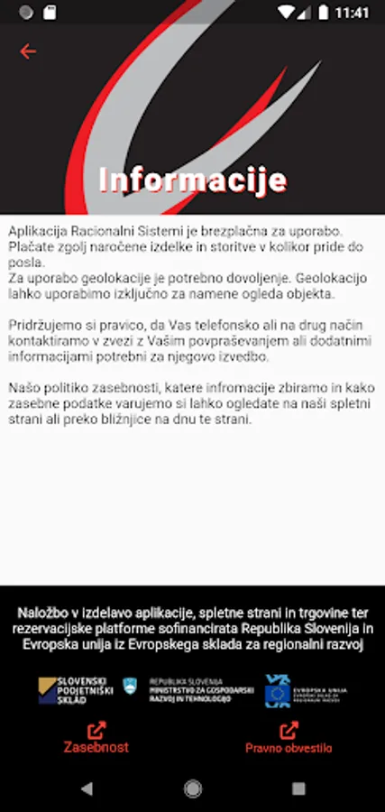 The investment in the development of the mobile application is co-financed by the Republic of Slovenia and the European Union from the European Regional Development Fund.