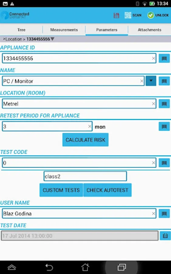 The Metrel aPATLink Android is Advanced Portable Appliance Testing tool. It enables fast and simple data management of tested appliances, as well as a quick overview of already performed tests by simply scanning a QR code. The Application enables the user to send results to the main office before leaving test site, enter and save data to the test instrument by using a Smart phones’ keyboard. Also it enables a creation of the custom made database for portable appliances’ ID’s, the appliances’s names and the appliances’ locations. All these features enable the user a faster and easier