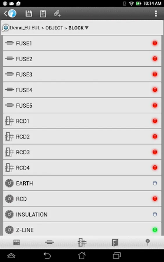 Create Structure of Electrical Installation at the site. Upload Structure of Electrical Installation to your test instrument, and download data to EuroLink Android Application.