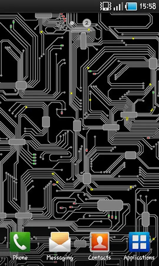 Add a beautiful hand drawn hi-tech background to your android device! A circuit board (PCB) in five different colors and with data bits flying along the connections!