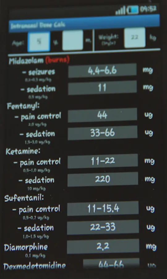 This application gives you all essential drug doses for intranasal (IN) application (both children and adult).