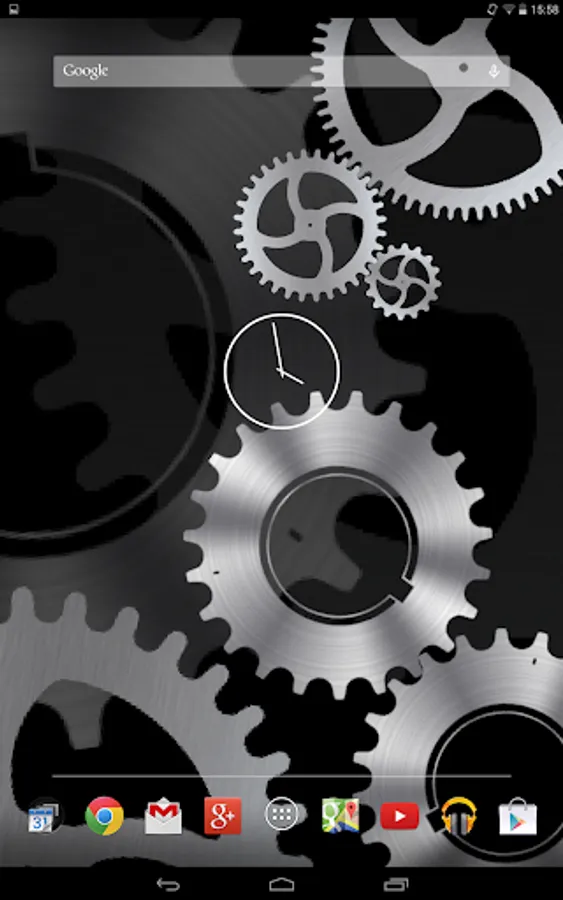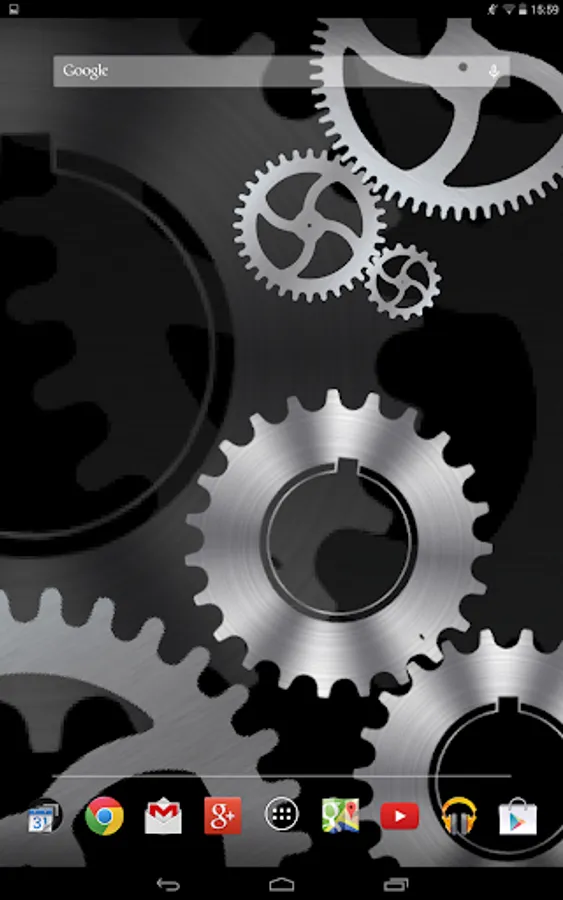 Animate your background with beautiful steampunk gears. You can rotate the gears by swiping your finger. Swiping up or down will change the rotation direction. Slow swipe will result in slower rotation speed. Double tap will stop the rotation.