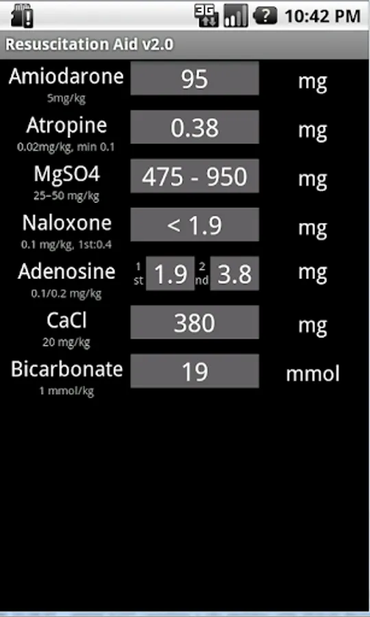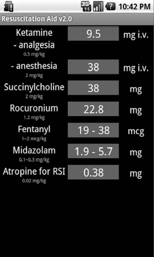 - Calculation of doses periarestnih drugs, and drugs for intubation (RSI) (second and third screen - is needed polistati your finger on the screen)