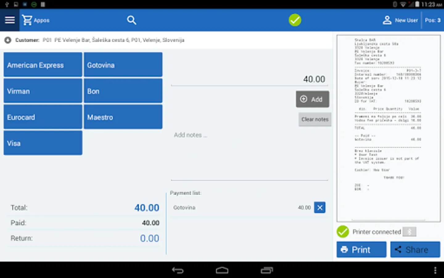 Zappos allows easy connection to a mobile printer and other peripherals via a Bluetooth interface. Act locally, connect to the Internet only needs to fiscalization account and sinronizacijo with Cloud-om. All data and accounts are securely stored in the cloud applications.