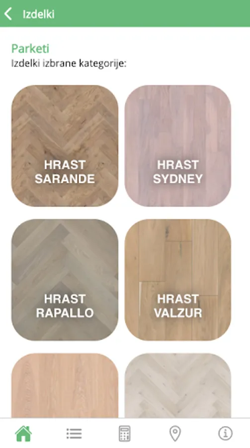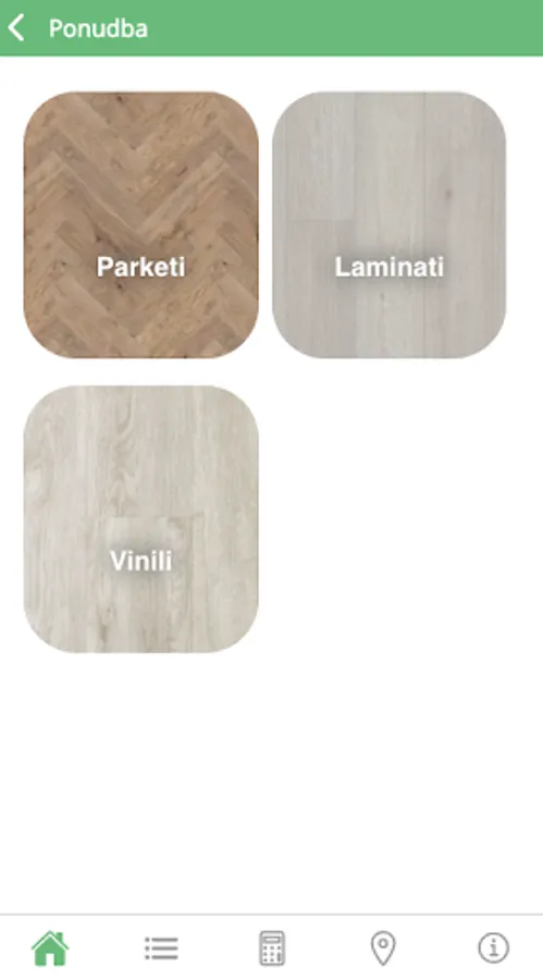 Mobilna aplikacija je namenjena vsem, ki izbirajo novo talno oblogo. Izbirate lahko med različnimi kategorijami talnih oblog (parket, laminat, vinil), v vsaki kategoriji pa vas čaka bogat izbor različnih vrst izbrane talne obloge. Vnesite še mere vašega prostora in tako takoj pridobite okvirno ponudbo.