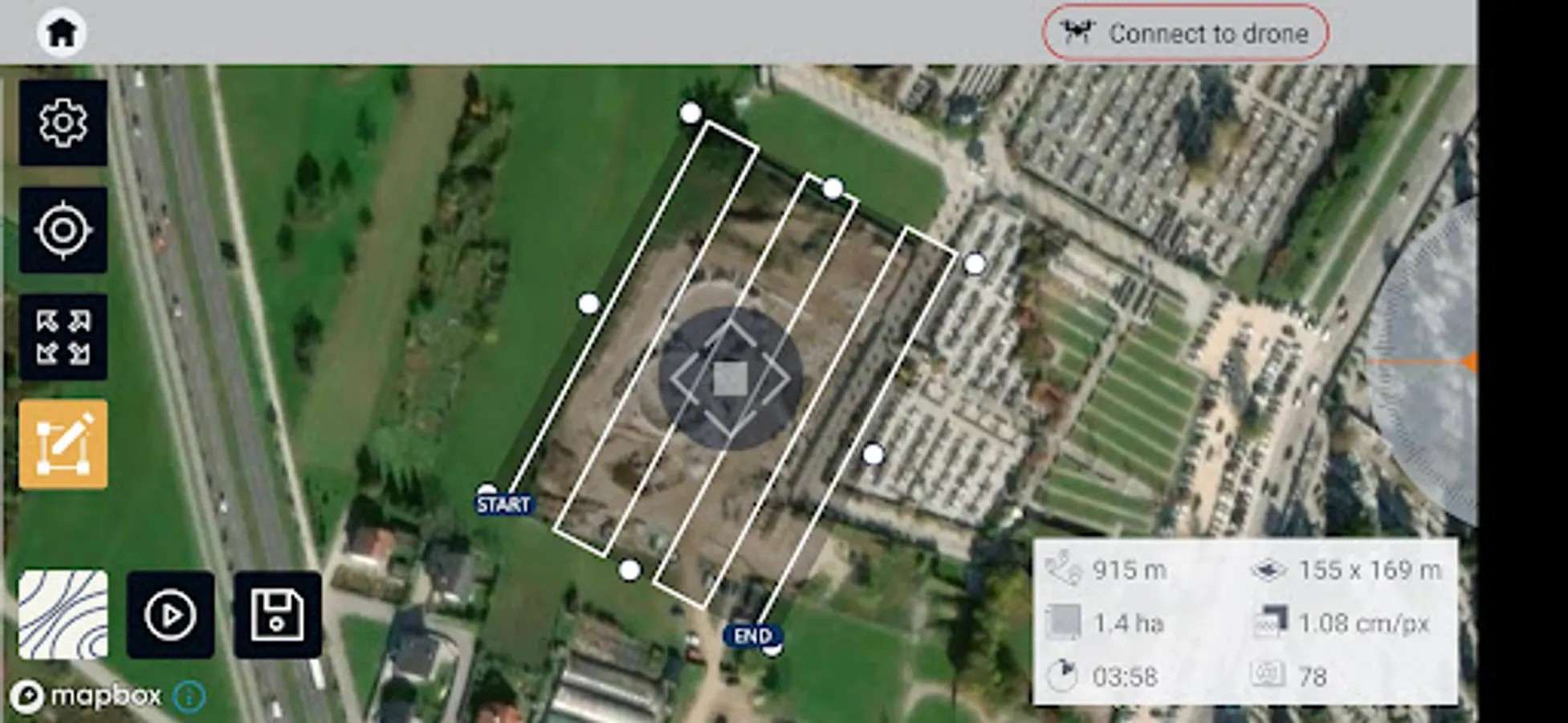 3Dsurvey accepts no liability for damage, injuries or legalities from the misuse of this app. Use only in safe environments and follow your local drone regulation.