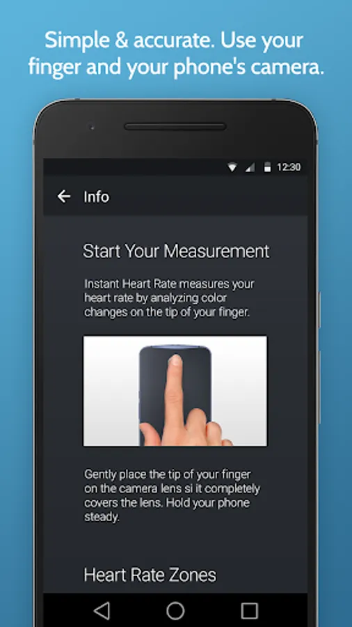 Measure accurately your pulse and heart beat zone with your heart rate & health monitor after sleeping or during workouts & training. Instant Heart Rate doesn't require heart rate straps. Instant Heart Rate functions similarly to pulse oximeters, detecting change in your finger to provide accurate heart beat measurements.