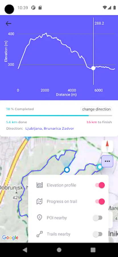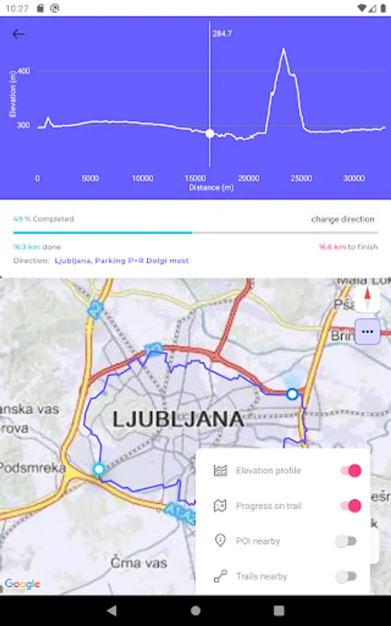 - You can check your current status on the trail with the exact elevation level and position along the trail