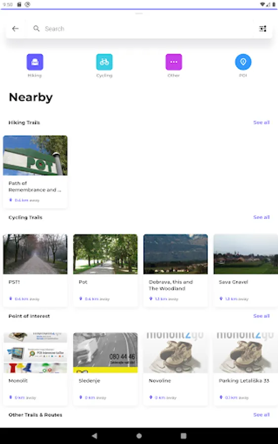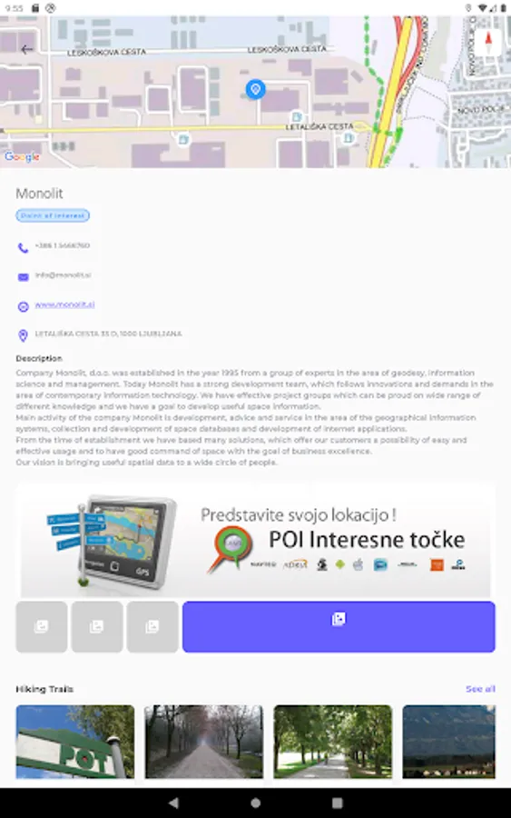 Monolit2Go is the ultimate outdoor guide for hikers, cyclists and other nature fans that want to explore the great Slovenian outdoors. It is meant for everyone who enjoys spending time outside, discovering new places and wonders of Slovenia. Application includes more than 2.600 hiking and cycling trails as well as information on other types of trails such as wine and touristic routes. This easy to use guide contains data for the entire Slovenia, all the way from the Alps to the coast.