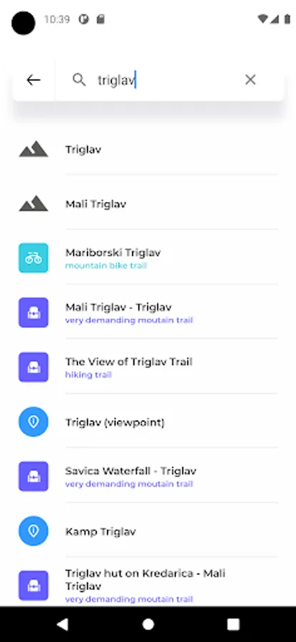 - The app shows trails around your current location by default but you can also easily search for trails in a specific region, around a city, address, and trails leading to a single mountain peak