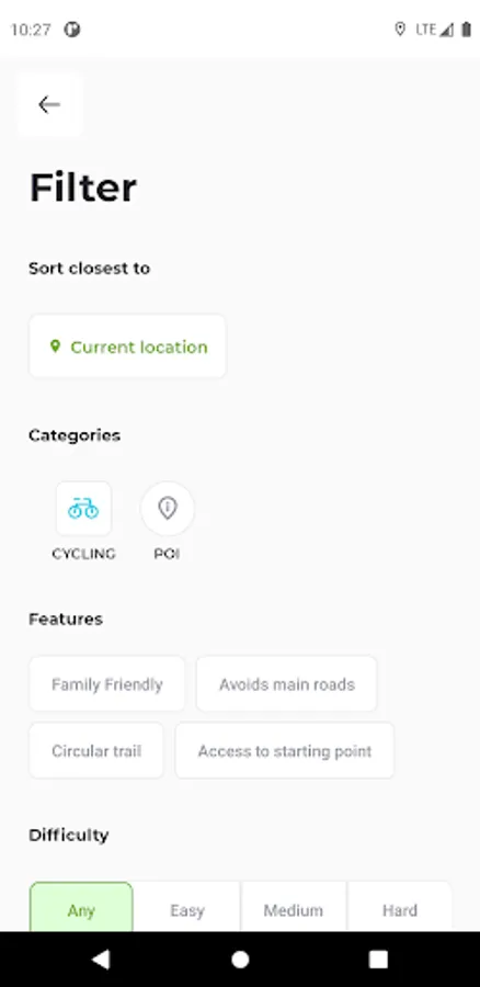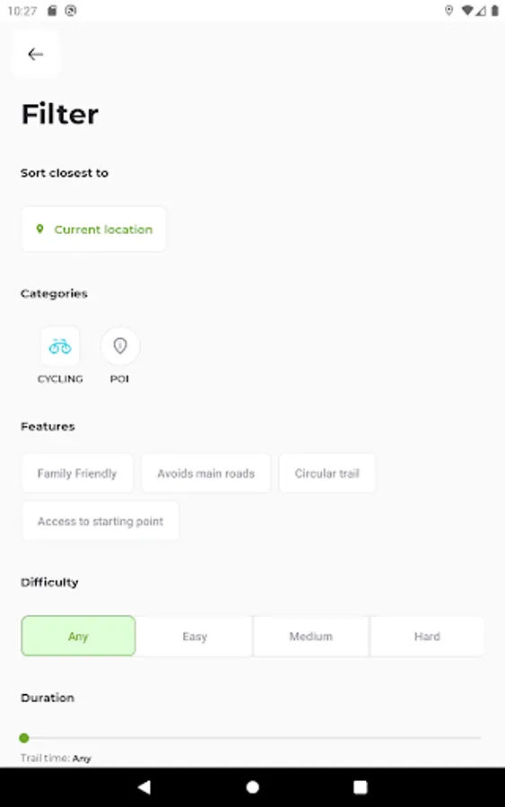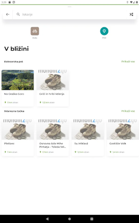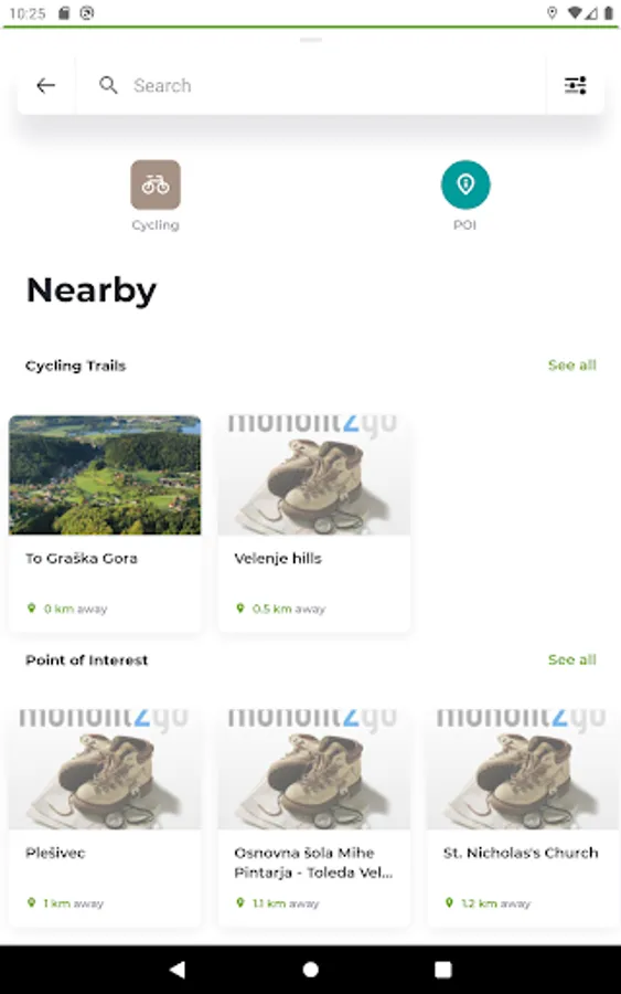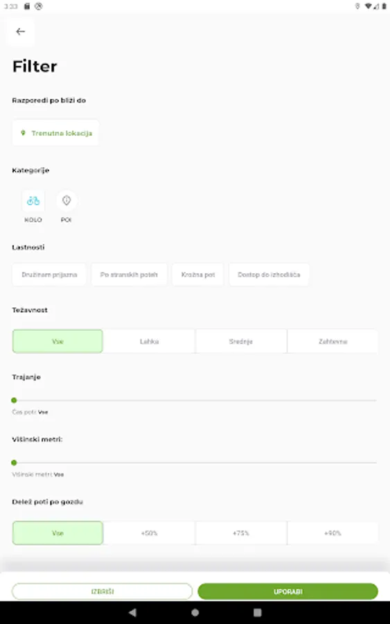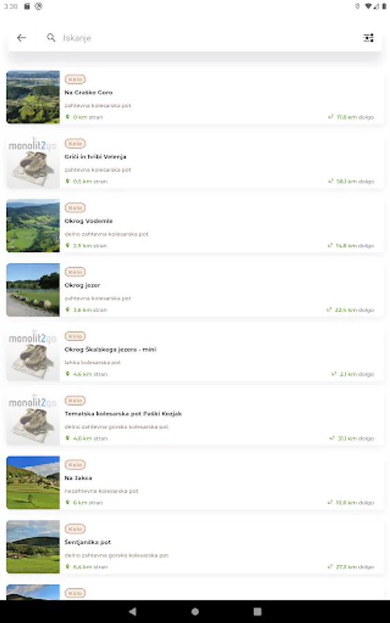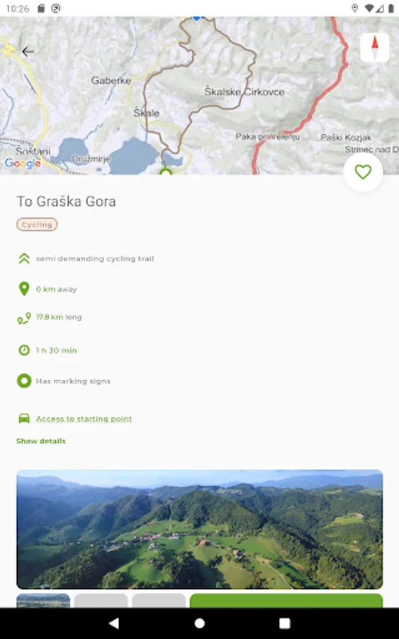The pre-set application always shows the routes that are in the immediate vicinity (depending on the current GPS location) and allows easy search between routes. You can find routes in a certain area or in the vicinity of any place or address. You can also filter routes by route complexity, time or. path length. We can look for family-friendly paths, circular paths, side roads.