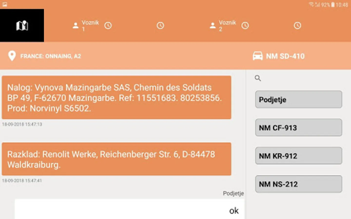 S-DASH is an application that includes a communication module combined with Sygic navigation for Trucks. It allows clients of Sledenje to directly communicate between their office and their fleet, at the same time providing Truck specific navigation. Drivers can receive selected navigation waypoints or routes directly from the office, which automatically upload into the navigation. The application also show TACHO data on a daily and weekly basis for drivers to always know how much working time they have left.