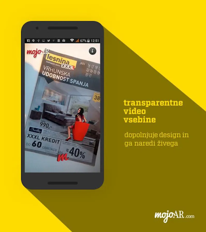 mojoAR with a single click connects printed and the rest of the physical world with galleries of images (transparent) video content, other multimedio, websites, social networks, e-commerce, 3D objects, etc. Remove mojoAR and try it out for yourself.