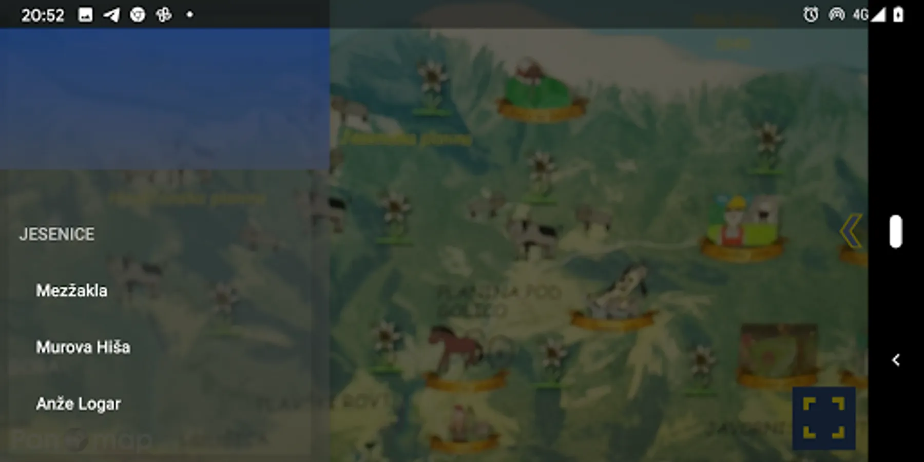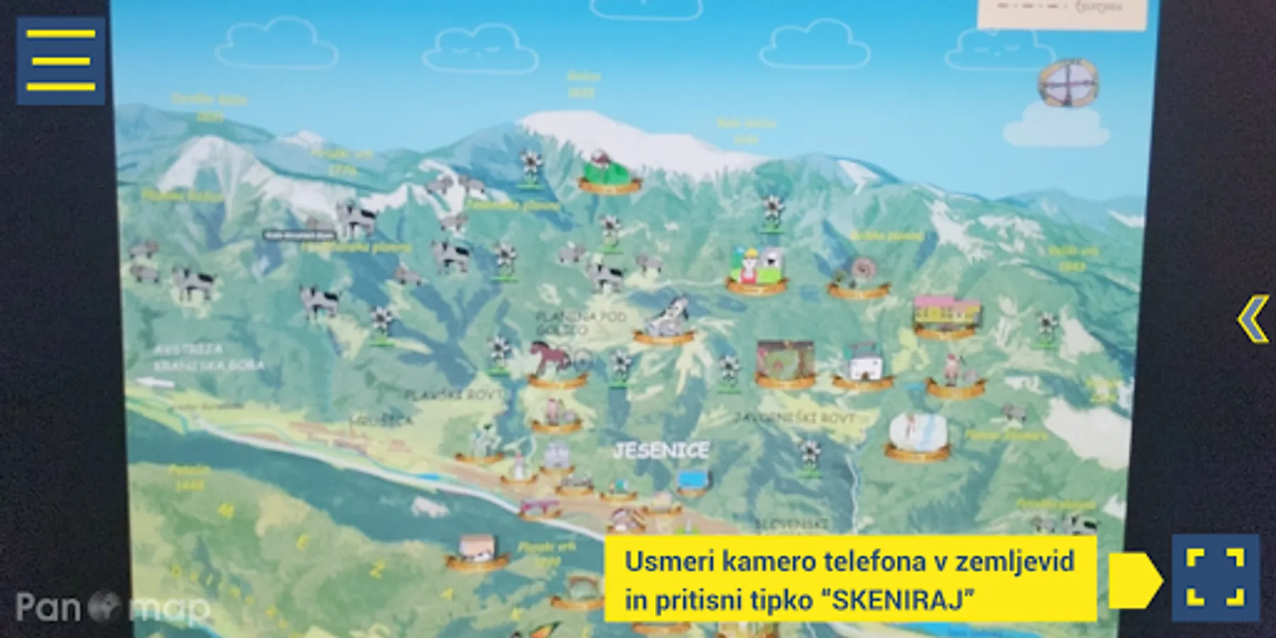 The application only works when using a printed map Škratek bergmandeljc explores Jesenice. The map is available on the web link: https://www.panoramske-karte.si/skratek-bergmandeljc