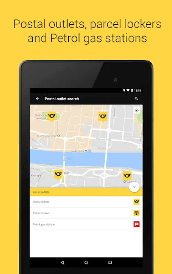 • the search for automated parcel machines from which you can send and receive parcels 24/7, and Petrol service stations where certain postal services are provided;