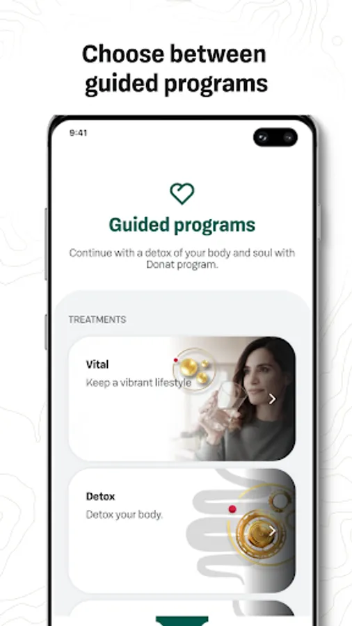 Donat natural mineral water helps maintain health – and can even eliminate a number of medical problems. For centuries, people have been coming to Rogaška Slatina for treatment using therapeutic mineral water and other natural medical procedures. Based on an examination and any subsequent tests ordered, your doctor will prescribe Donat from the spring at the Rogaška Medical Centre and advise you on the best way to take it. This app will help you take the Donat drinking cure properly at home. It gives instructions on how to use Donat natural mineral water preventively or for a range of medical problems.