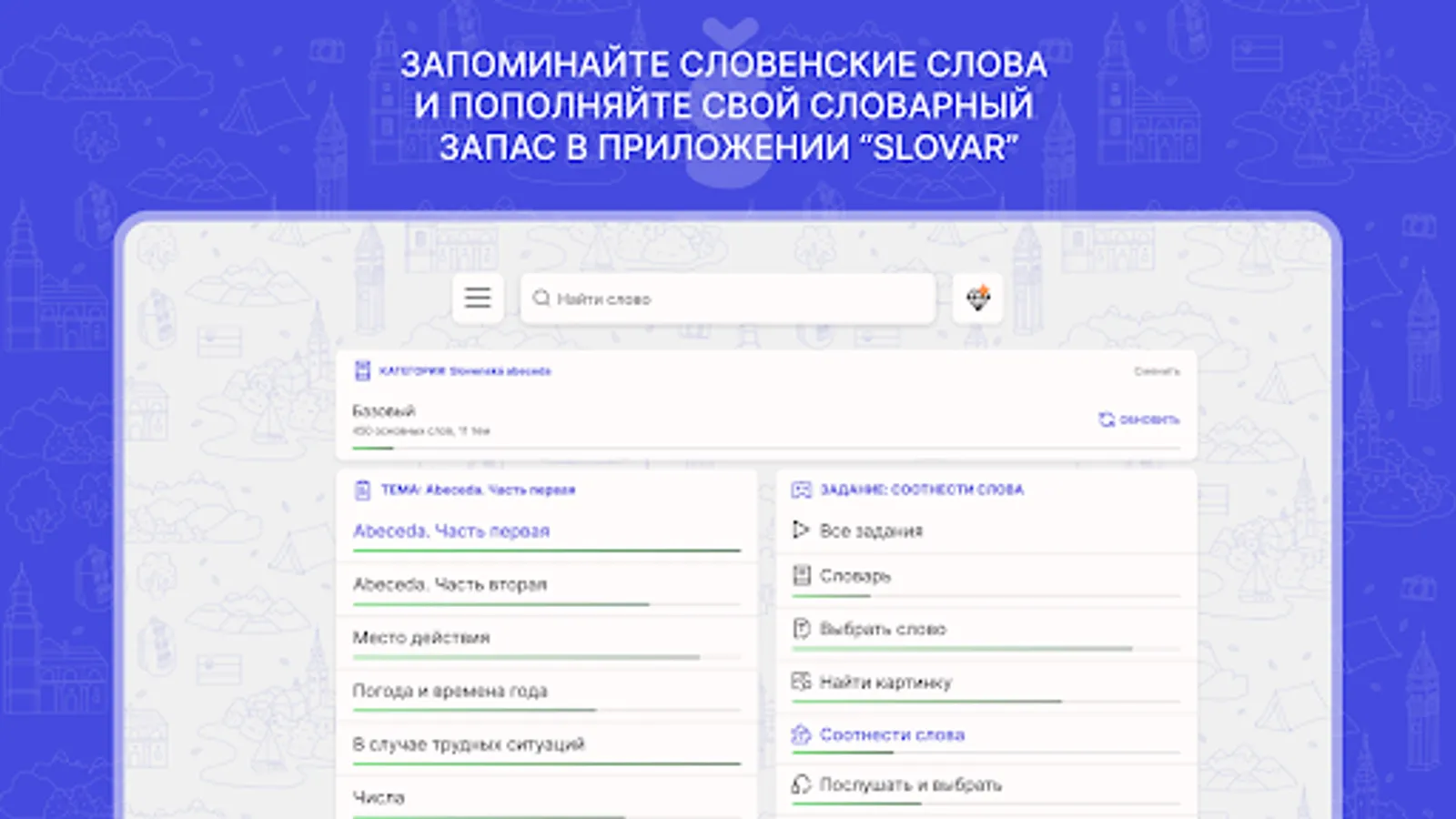 "Slovar" is your personal assistant for improving your Slovenian vocabulary up to C2 level, mastering and practicing the spelling of words. Learning Slovenian has never been so easy!