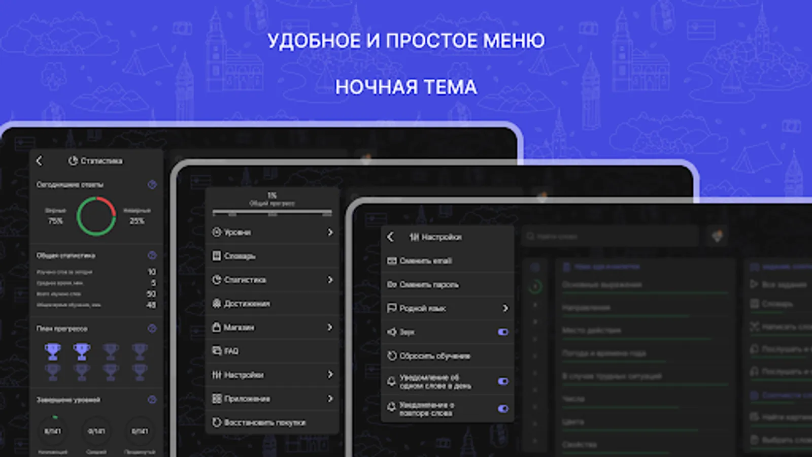 - The possibility of free passage and access to all sets - get "diamonds" for successful training and open new sets for free;