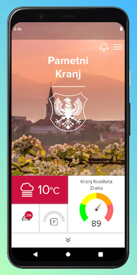 Pametni Kranj mobile application offers free information and access to services related to mobility (e.g., information on available parking slots), environment, weather, municipal news and events, related city services and payment, digital communication between the municipality, urban service providers and its citizens and other mobile application users.