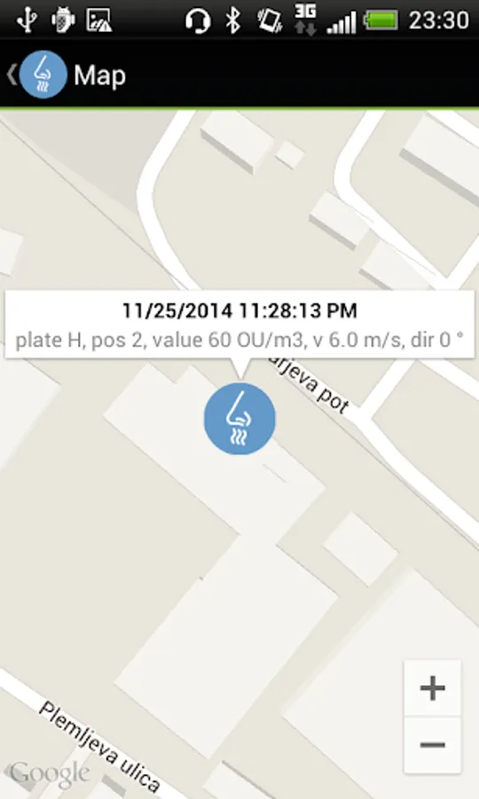 - Record measurement (odour value, time, GPS Location, wind speed and direction)