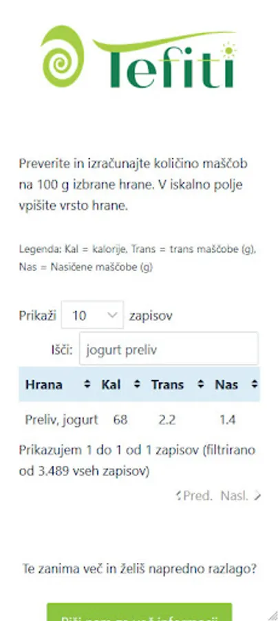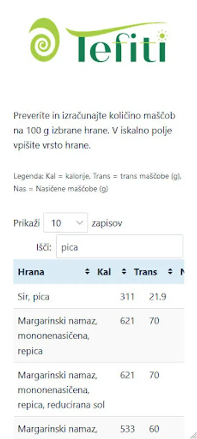 Search over 3,000 types of food, showing calories, trans and saturated fat in each food. The application also works without an internet connection.