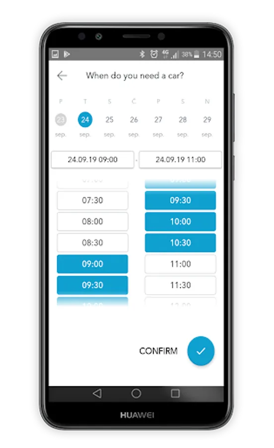 App enables you to book a car by date and time or by the car type. It also allows you to change your reservation, review your travels and contact support at all times.