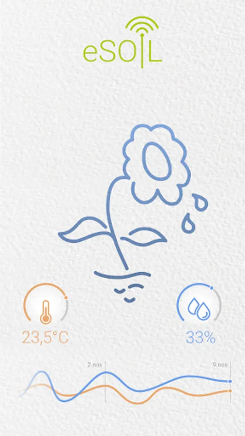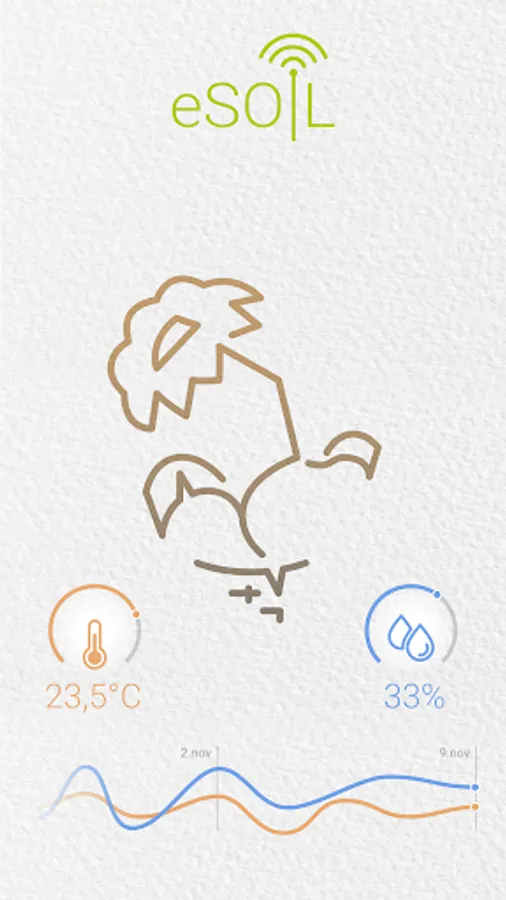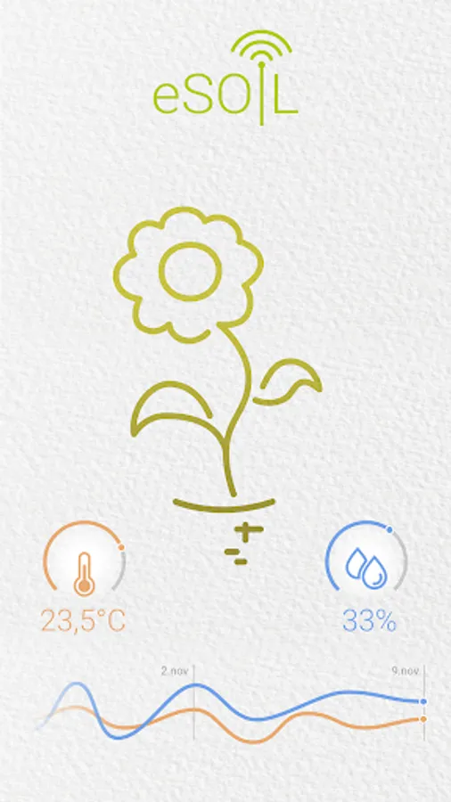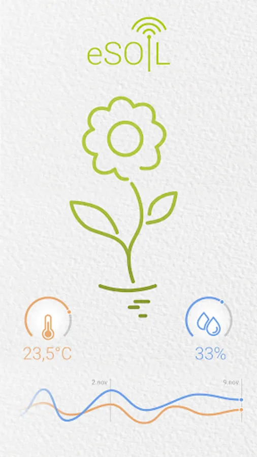 The eSoil LEIS application works in combination with the eSoil device developed by the Laboratory for Electronic and Information Systems. The eSoil is embedded in the soil in which the plant grows. The device then sends a data about the relative humidity and ambient temperature to the mobile application eSoil LEIS on your smart device via a wireless connection. The eSoil LEIS application then evaluates the status of the plant on the basis of the received data and displays it both numerically and graphically.