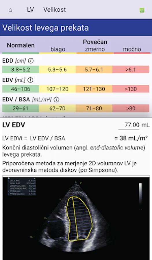 The application is based on an existing Echocardiography manual in numbers issued by the Association of Cardiologists of Slovenia.