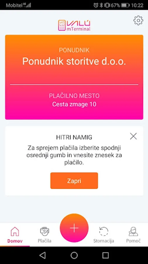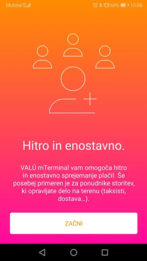 mTerminal is an enterprise application that allows you to receive payments with VALÚ. The mTerminal application is particularly suitable for fieldwork - for taxi drivers, food service providers and other service providers who perform field work. The condition for use is a contract with Telekom Slovenije for receiving payments with VALÚ. When you load mTerminal on your mobile, you can immediately start using and executing accepting payments with VALÚ.