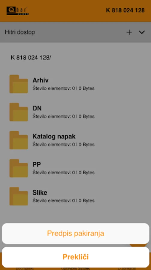 Mobilna aplikacija omogoča zaposlenim vpogled v dokumentacijo posameznih šifrantov artiklov, produktov ter orodij, shranjeno na strežniku. Uporabniku je preko mobilne aplikacije s funkcionalnostjo skeniranja QR kode na nalepki, ki je postavljena bodisi na izdelku, bodisi na orodju ali kjerkoli drugje prikazana vsebina direktorija za ta element na strežniku. Uporabnik lahko upravlja z to vsebino, dodaja nove direktorije, ustvarja ali generira dokumente ter nalaga slike.