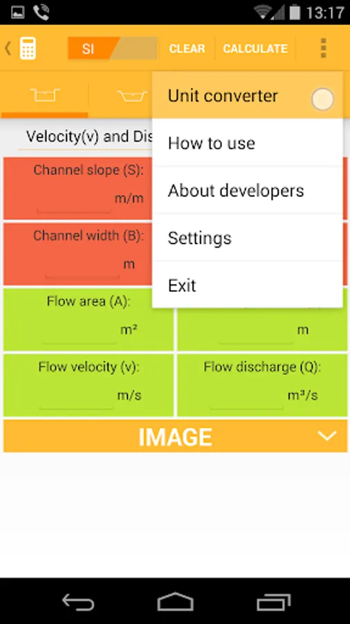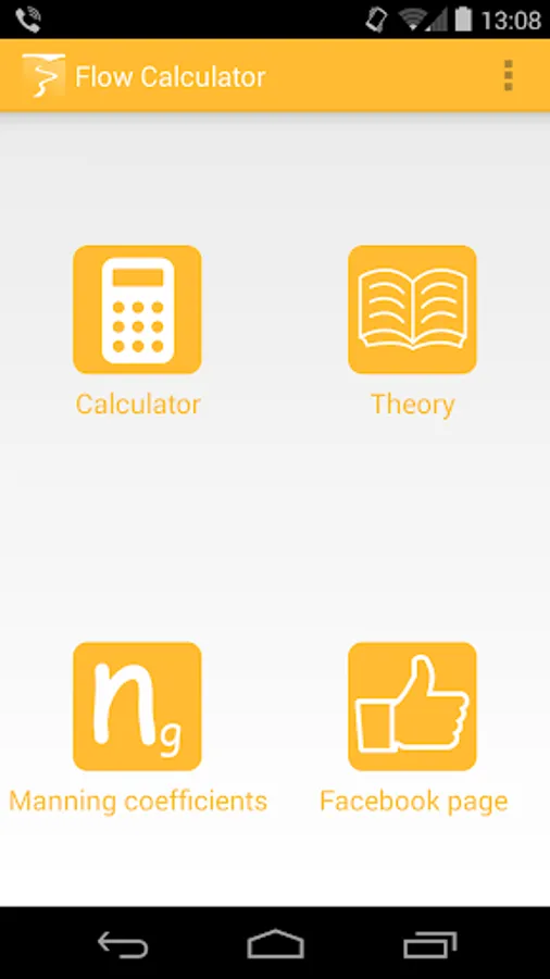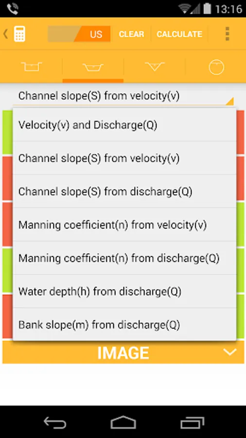 Flow Calculator is calculator of open channel flow. App calculates Manning equation for different channel shapes (user can choose different parameters of equation to be calculated). App supports rectangular, trapezoidal, triangular and circular channel shape.
