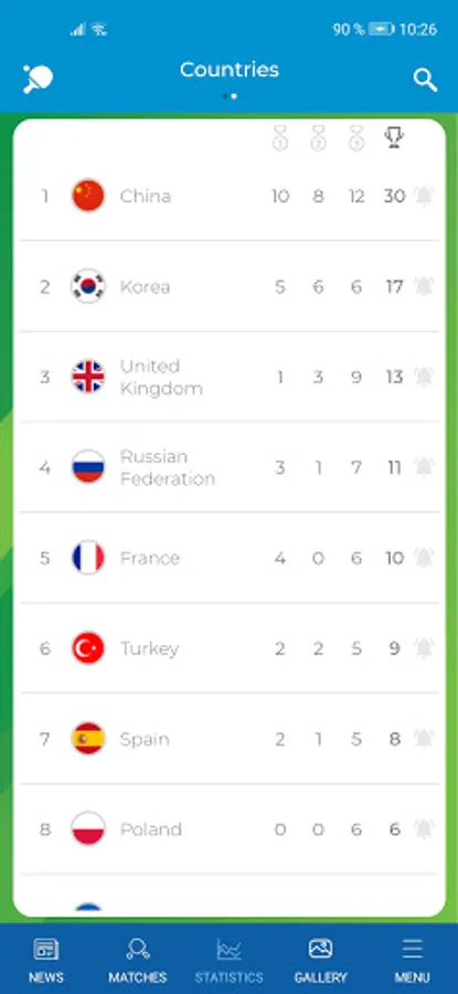 Is my favorite player 1st already? Why not check the leaderboard? There are all sorts of statistics and rankings there including medal counts! And the same applies for country rankings as well.