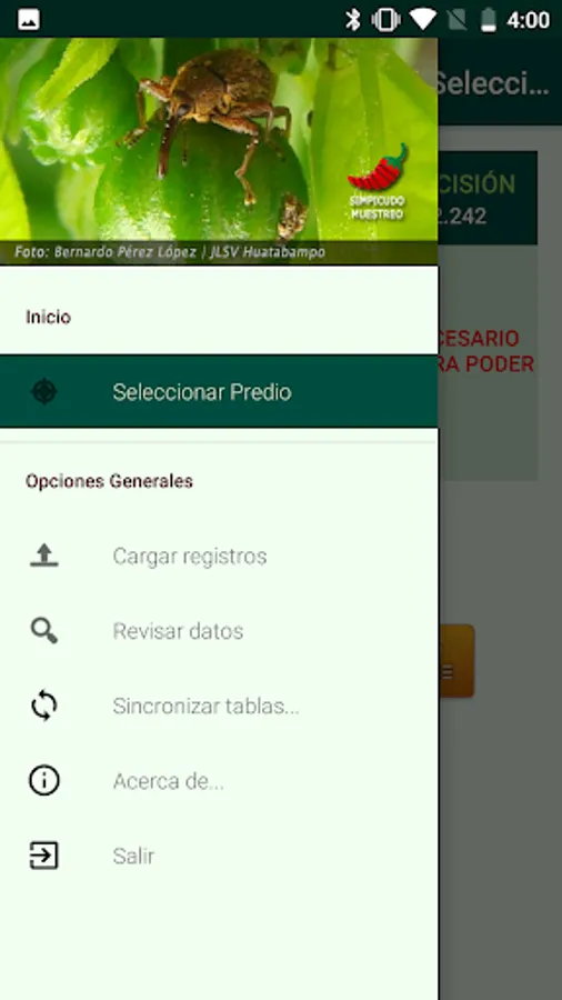 SIMPICUDO - Sampling is a mobile application designed to manage the activity of the phytosanitary specialist in the field, focused on the monitoring of the pest insect Picudo of Chile, which affects this crop and can cause damage of up to 100% during fruiting.
