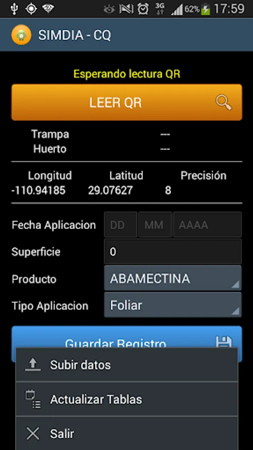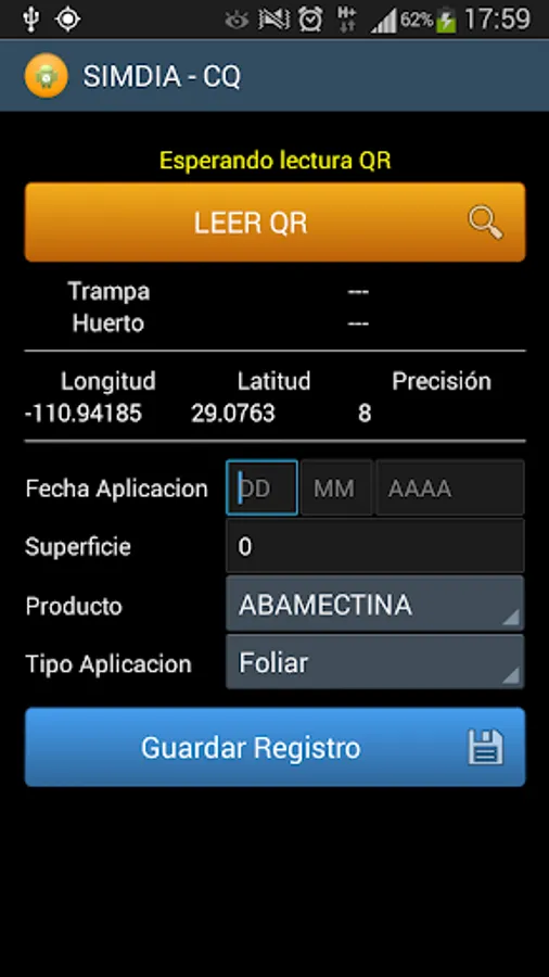 Complement SIMDIA application for registration of chemical control orchard or farm.