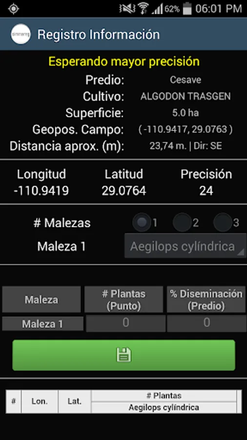 Auxiliary capture application field for Weed Monitoring System Regulated (SIMMAREG)