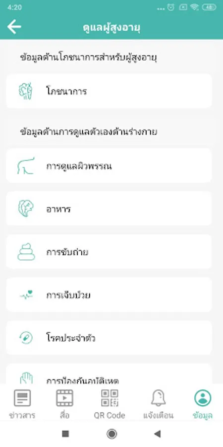 Bangkok Aging of Happiness "for access to health services for the elderly and monitoring elderly This application can save elderly identity information. Health history of the elderly With contact with relatives or carers in an emergency This application has a medication notification program. Doctor appointment Record health information and results of various diseases that need to be monitored. There are various health assessment forms for the elderly, along with recommendations for health care according to the assessment results. And can be alerted to relatives or caregivers in the event that the elderly are abnormal There is an elderly self care information display (Elderly Care) in an infographic format that can be easily understood. There are clips showing exercises for the elderly and various media to relieve stress for the elderly. The user can also update to receive information about the elderly as well.