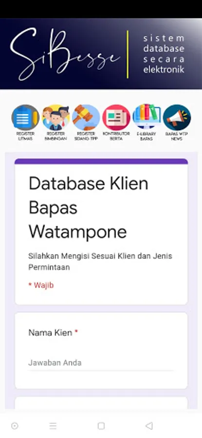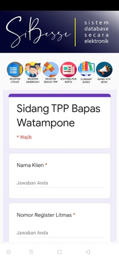 TPP Session Registration, Client Guidance, News Contributor form, digital library, as well as up-to-date information on Bapas Watampone. This application is useful for making it easier for employees, especially Community Advisors in carrying out their duties
