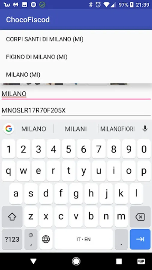Calculator for the Italian tax code. During compilation the tax code is automatically calculated and copied to the clipboard. Fast and easy to use.
